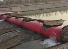 橡膠壩使用壽命短(橡膠壩采用的是再生橡膠原料,壩袋易老化,容易被上游漂浮物或尖銳物損壞,從而降低使用壽命);運行管理難度大(洪水過后一旦壩面淤積較厚,要求人工清理,否則壩袋不能正常升起蓄水,增加了后期的人工費用)。充水式橡膠壩冬季冰凍容易損壞壩袋,而充氣式橡膠壩不能調節壩高。